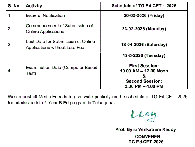 responsibilities for Telangana Edcet 2026, and the schedule is issued.